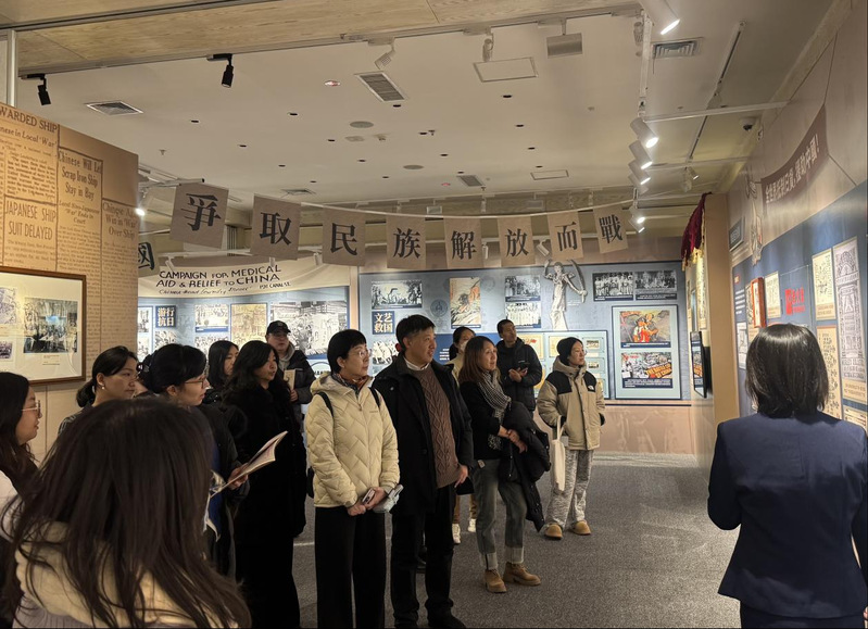 参观过程中,大家驻足凝视、认真聆听,不时交流感悟。从承载着侨胞思乡之情与报国之志的书信手稿,到见证侨胞支援前线的医疗器械、军用物资;从记录侨胞在海外开展抗日宣传的报刊,到展现侨胞与世界反法西斯力量携手作战的历史照片,每一件展品背后都蕴藏着感人至深的故事,让大家深切感受到海外华侨对祖国母亲的赤子之心和为民族解放不惜牺牲的崇高气节。